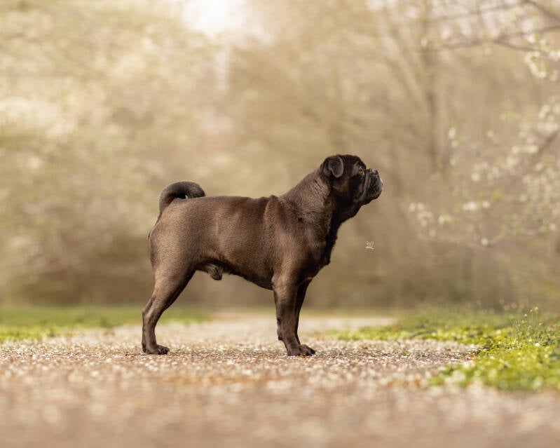 Er ist ein stattlicher, großer Rüde, eine Schmusebacke eben ein altdeutscher Mops mit Ausstrahlung. Pepe ist ein intelligenter, wunderschöner Rüde mit den allerbesten Eigenschaften die man sich nur wünschen kann. Die Menschen wickelt er ganz schnell um den Finger, keiner konnte ihm bisher widerstehen. Er findet immer seinen Platz auf dem Schoß.
